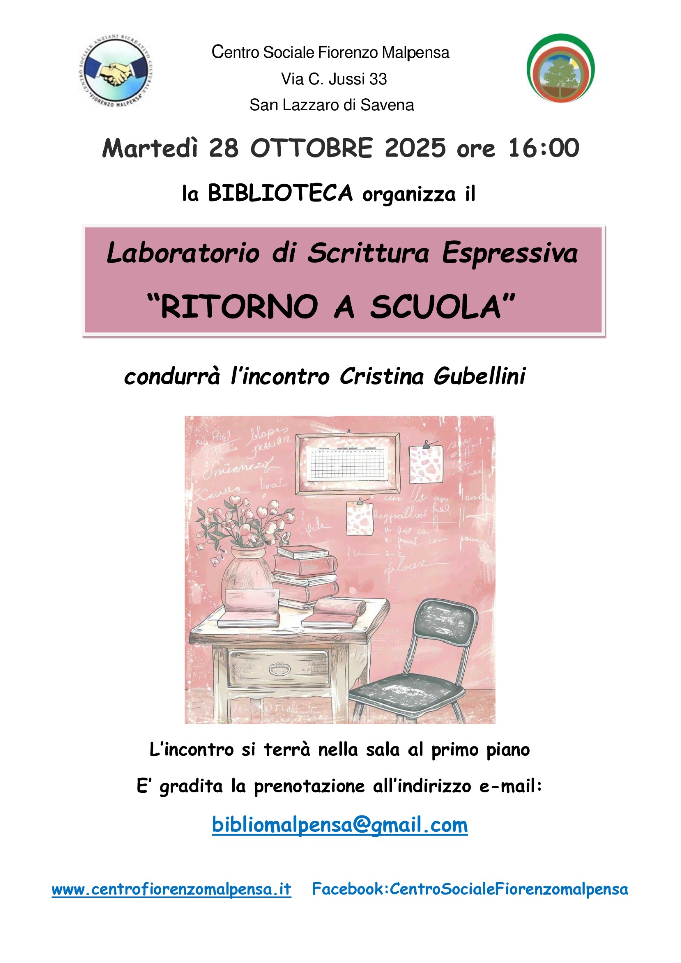 E´ gradita la prenotazione all'indirizzo e-mail: bibliomalpensa@gmail.com