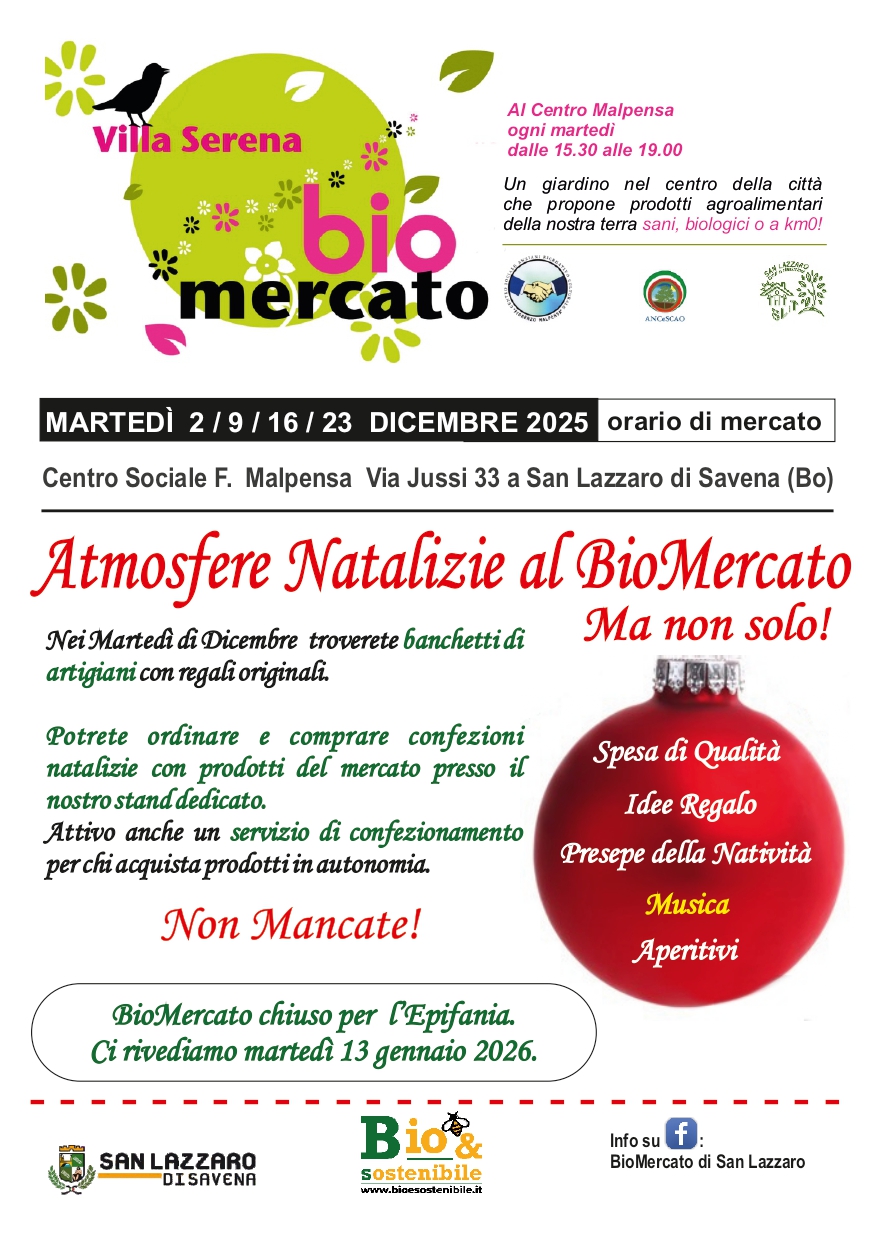 Nei martedì di dicembre, in orario di mercato, troverete banchetti di artigiani, confezioni natalizie, idee regalo